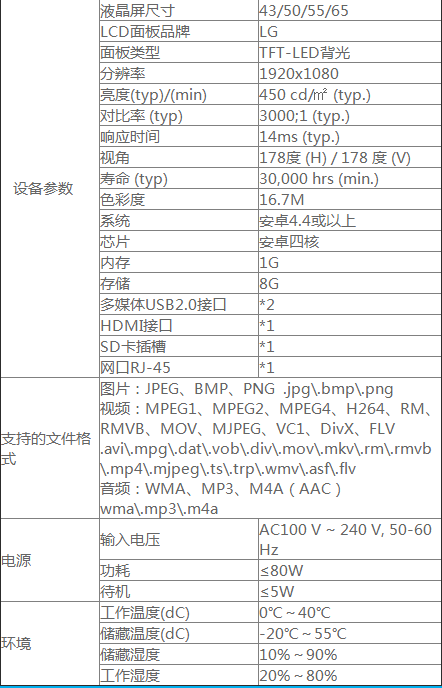 廣告機產(chǎn)品參數(shù):