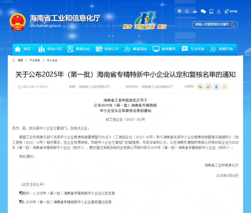 海峽股份通過2025年海南省專精特新中小企業認定 | |||||||